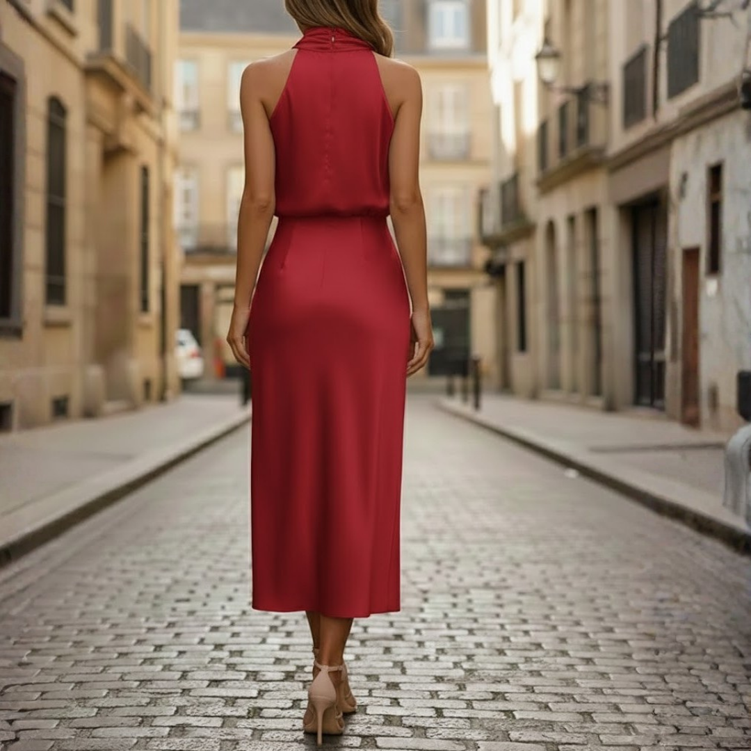 Women Midi Dress High Neck Sleeveless Cotton Blend